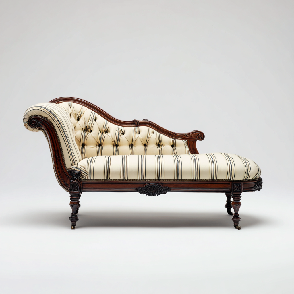 Chaise longue tissu rembourré bois sculpté 165x65x82 cm - crème rayé - usage salon - style classique