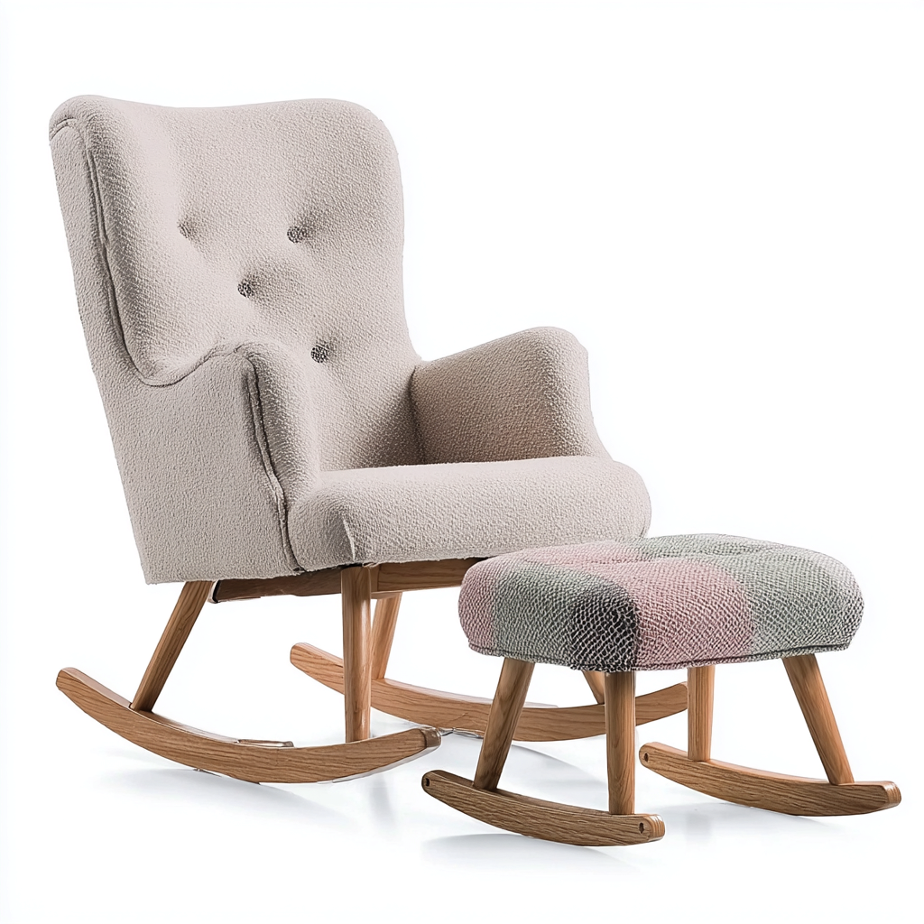 Fauteuil à bascule avec repose-pieds en bois et tissu rembourré 90x85x100 cm - beige - pour salon ou chambre - style scandinave