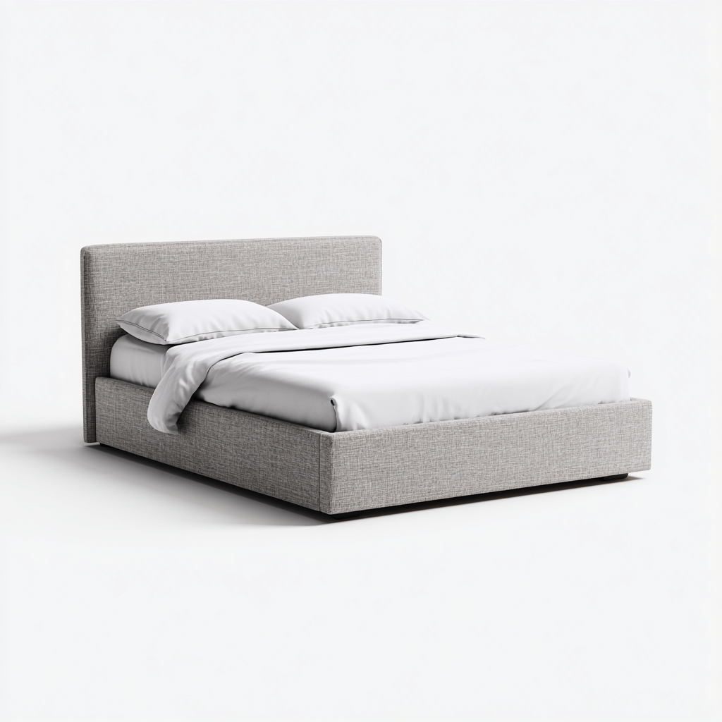 Lit double rembourré en tissu 200x160x98 cm - gris clair - style moderne épuré - adapté à la chambre