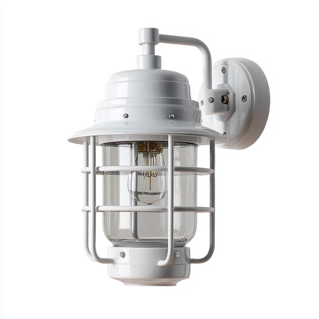 Applique murale extérieure en métal blanc et verre 20x16x32 cm - blanc - transparent - éclairage mural industriel pour façade et entrée extérieure