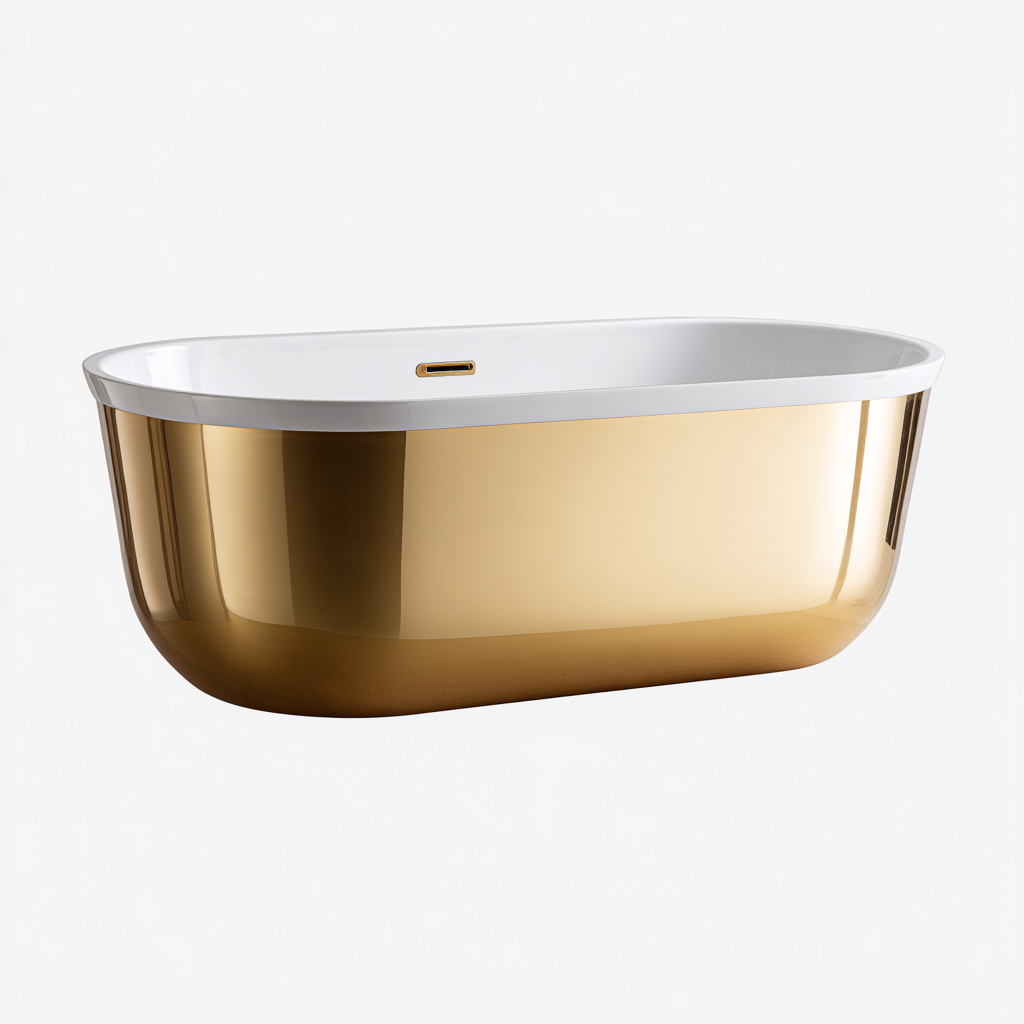 Baignoire îlot acrylique 170x75x58 cm - blanc - doré - usage salle de bain - design contemporain