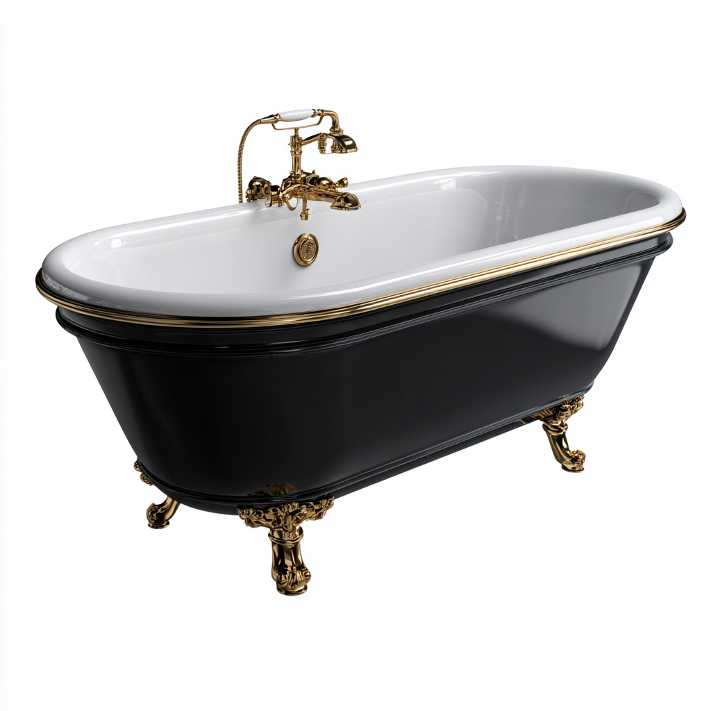 Baignoire îlot acrylique 170x78x72 cm - noir - blanc - adaptée à la salle de bain - style classique