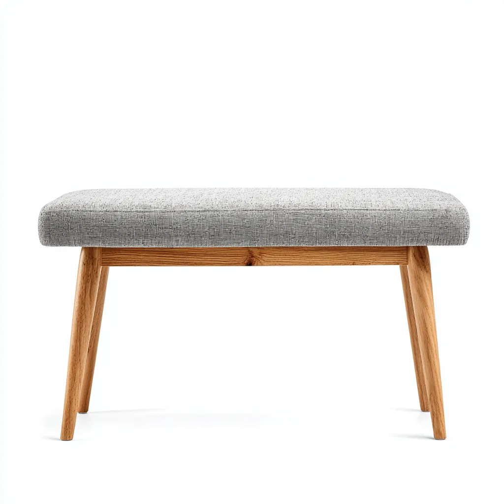 Banc de lit rembourré en tissu 100x40x45 cm - gris clair et bois naturel - style scandinave - adapté à la chambre