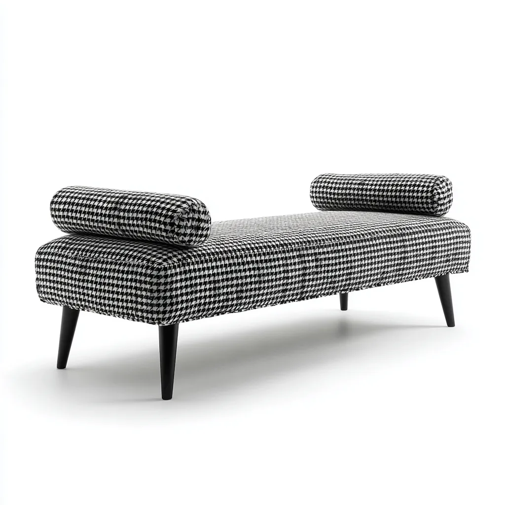 Banc de lit rembourré en tissu 120x40x45 cm - noir et blanc - style graphique - adapté à la chambre