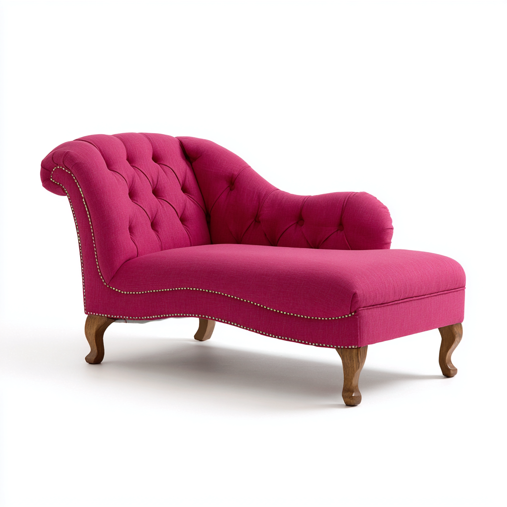 Chaise longue tissu capitonné 165x68x78 cm - rose framboise - pour salon - style classique