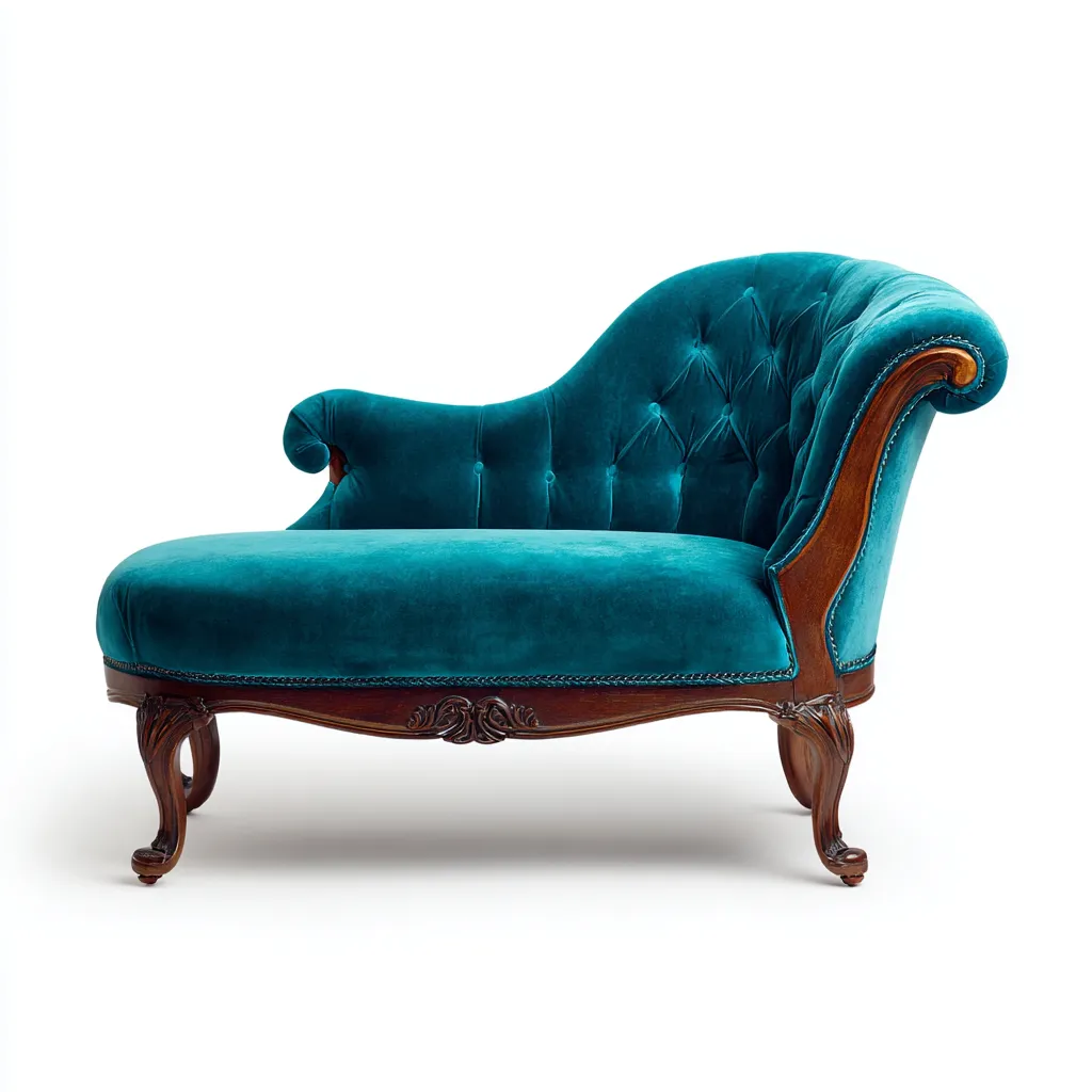 Chaise longue velours capitonné 165x70x80 cm - bleu canard - pour salon - style classique