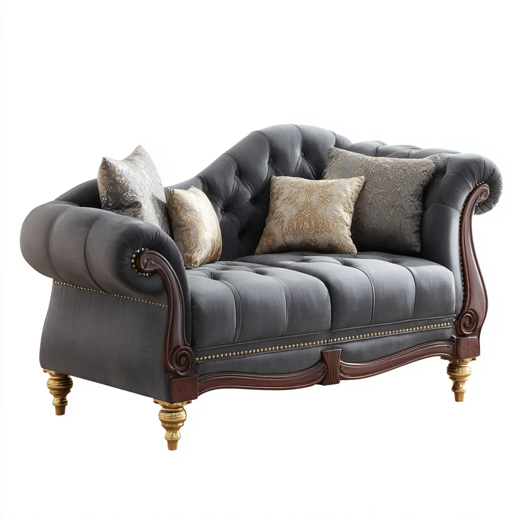 Chaise longue velours structure bois 165x70x85 cm - gris foncé - usage salon - style classique