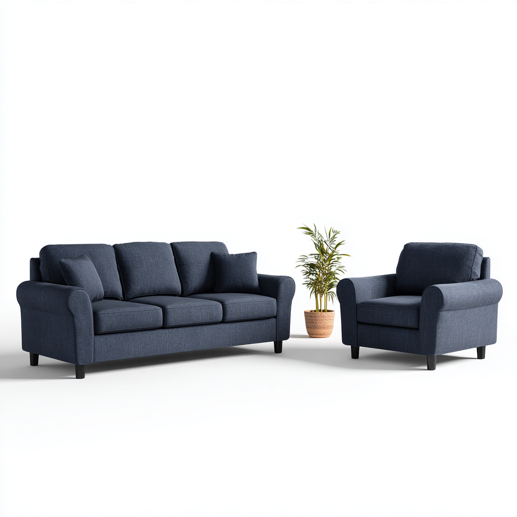 Ensemble de canapés tissu bleu foncé - usage salon - design contemporain