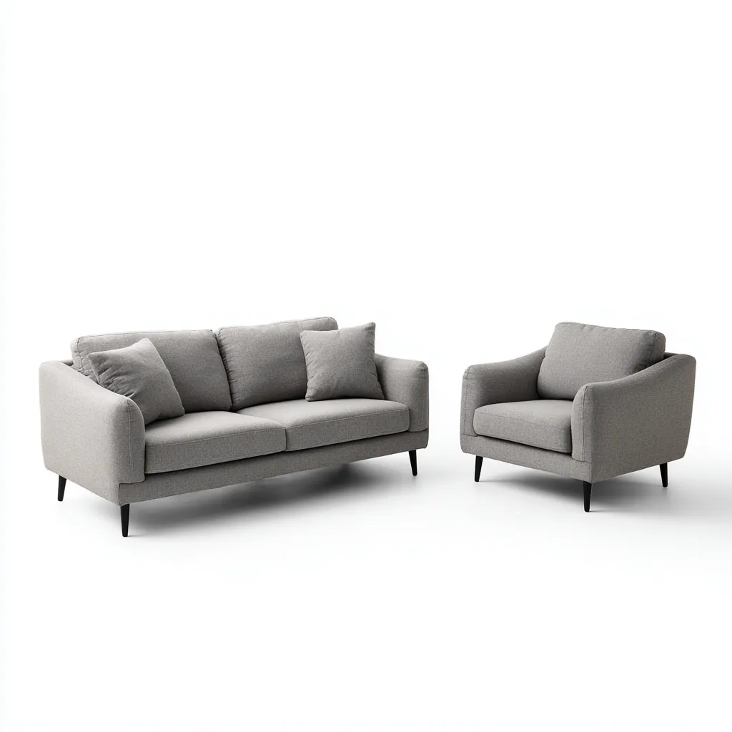 Ensemble de canapés tissu gris - usage salon - design contemporain