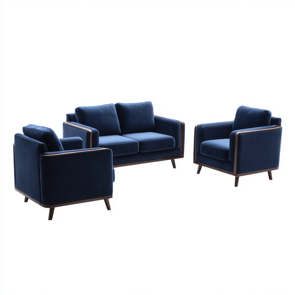 Ensemble de canapés velours tissu bleu foncé - usage salon - design contemporain