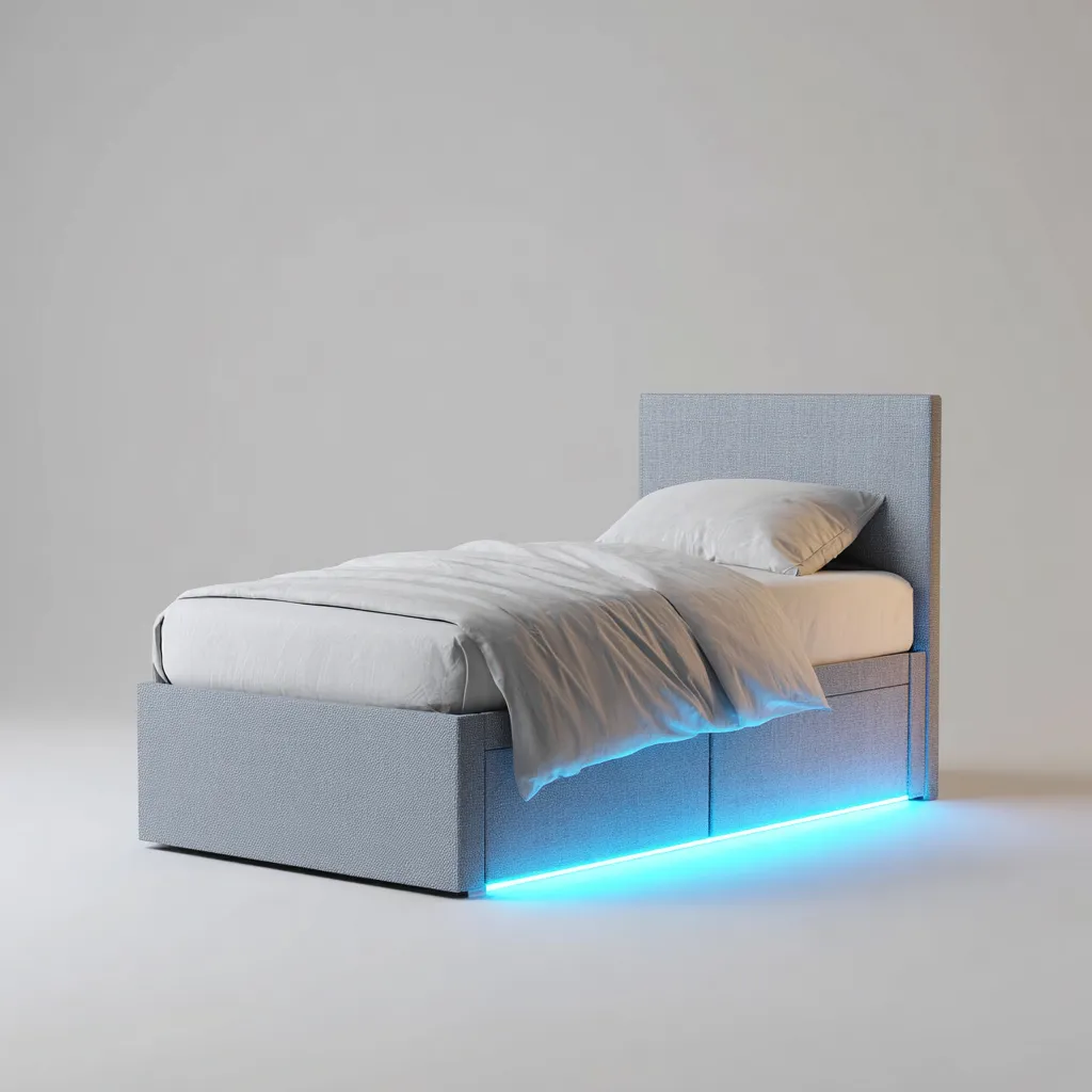 Lit simple en tissu 200x90x95 cm - gris - design moderne avec éclairage LED - adapté à la chambre