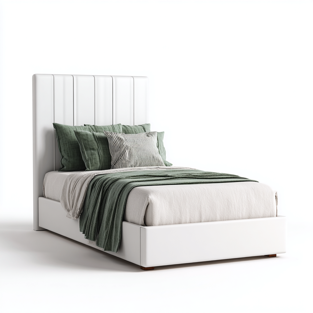 Lit simple rembourré en simili cuir 200x90x110 cm - blanc - design contemporain - adapté à la chambre