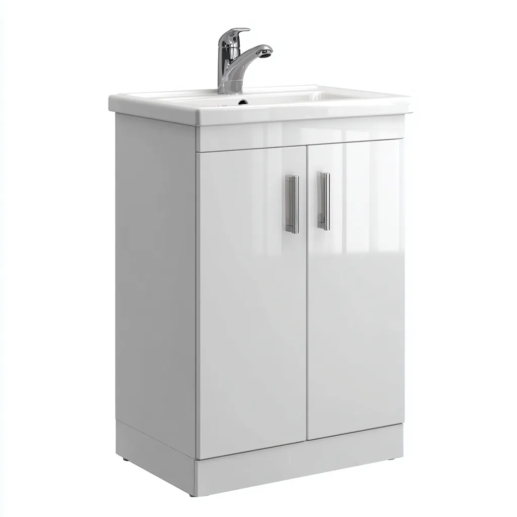 Meuble vasque au sol bois 60x45x82 cm - blanc - adapté à la salle de bain - design moderne