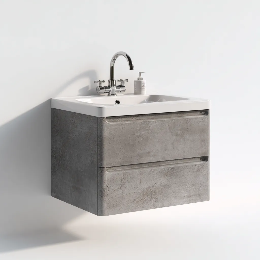 Meuble vasque suspendu béton 60x45x50 cm - gris - usage salle de bain - design moderne
