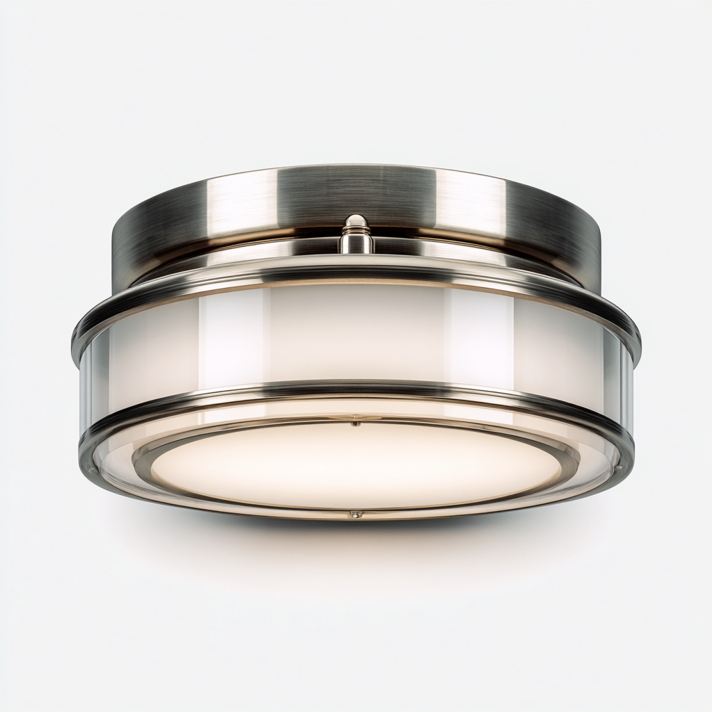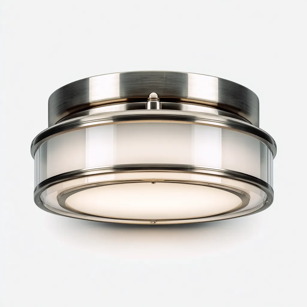 Plafonnier en métal et verre 32x32x10 cm - nickel satiné - blanc - pour salle de bain cuisine couloir - style moderne classique